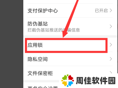 3、然后点击安全和隐私菜单进入界面,点击应用锁定。