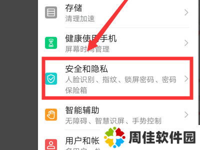 2、然后单击设置图ZI标记,进入设置界面,并找到安全和隐私菜单选项。
