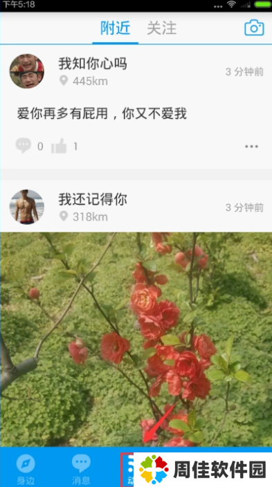 4、进入动态页面,即可查看附近朋友和你关注的朋友最新的动态。