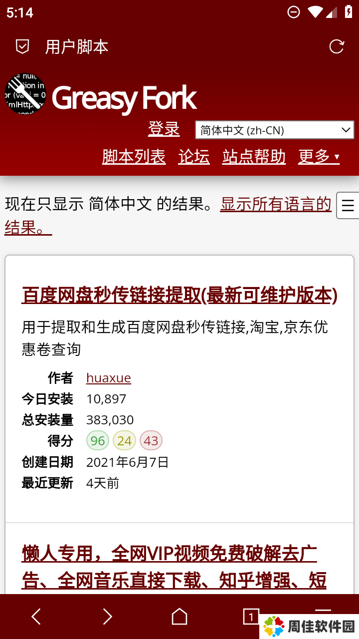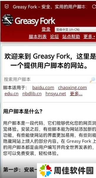 4、访问Greasy Fork网站,利用高级搜索功能找到所需脚本。