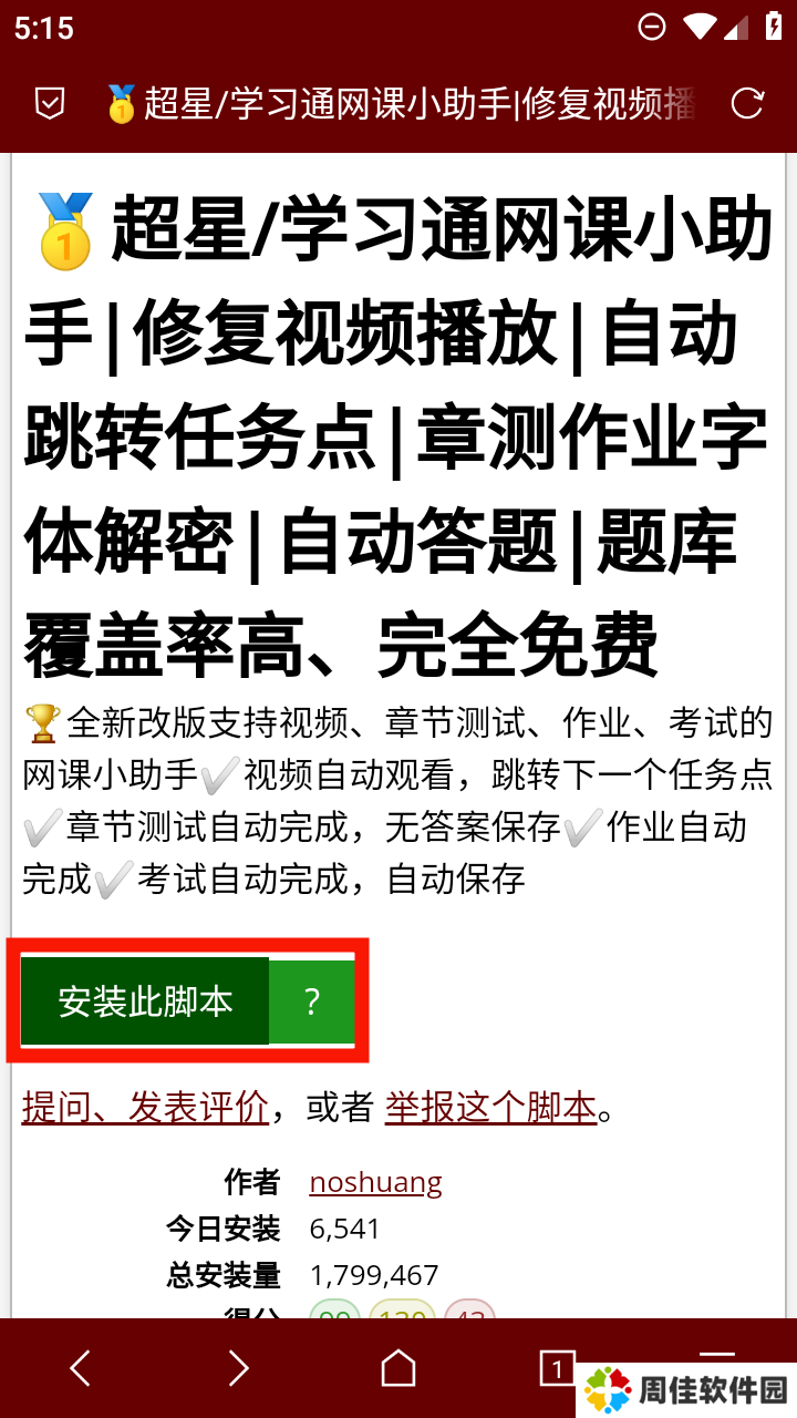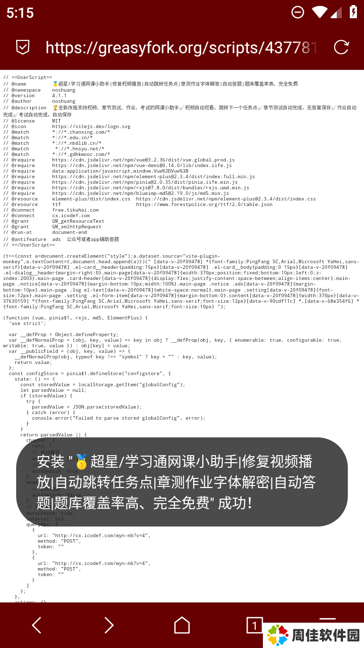 6、脚本就安装成功了,过程并不复杂,电脑端的脚本安装也是这个步骤。