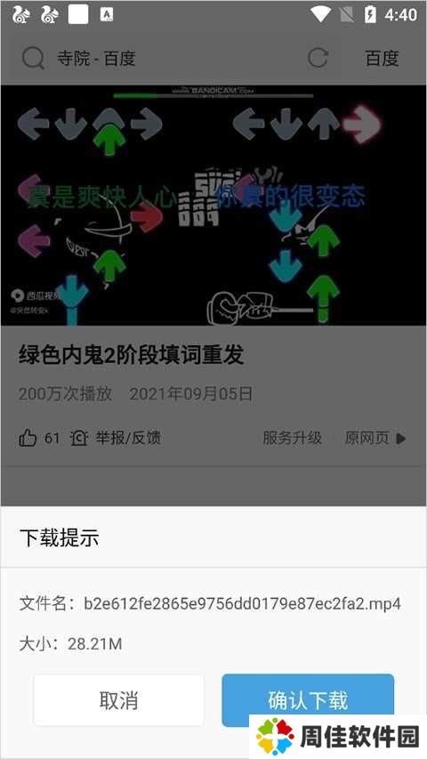 点击下载按钮后,弹出提示框,允许该应用访问手机存储文件
