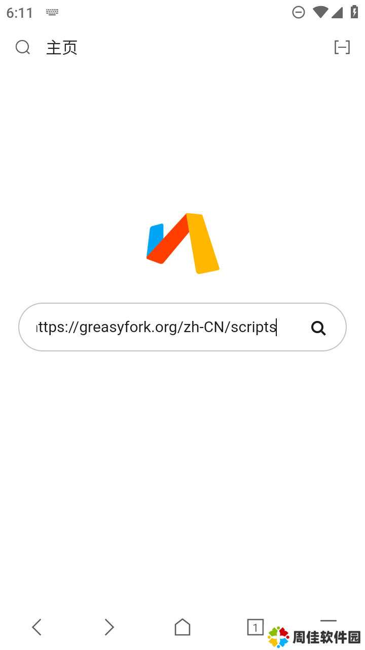 1、在本站下载安装好via浏览器,打开之后,在浏览器搜索栏中输入Greasy Fork脚本网站,点击此处即可进入。