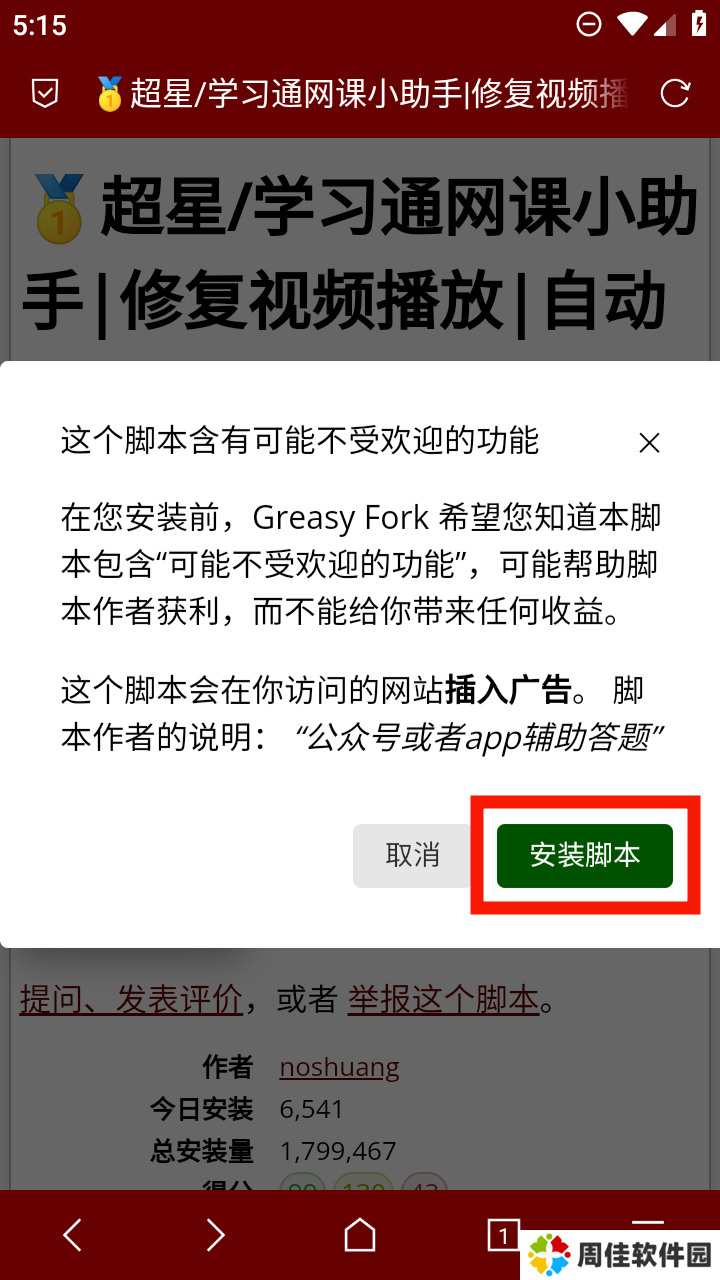 3、随便选择一个脚本打开,点击【安装此脚本】。