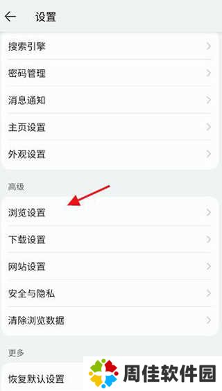 3、进入设置,找到下方的高级,点击浏览设置进入