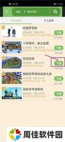 4.在点击地图存档,搜索我的世界。