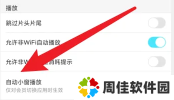 3、最后,进入设置页面,找到播放设置选项,点击开启自动小窗播放开关。