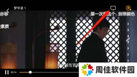 在观看电影加载完成后,右上角有个电视机按钮,点击它。然后选择自己的电视设备和播放源后,发送链接到电视上。