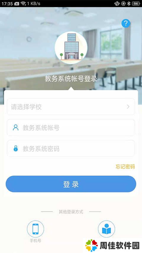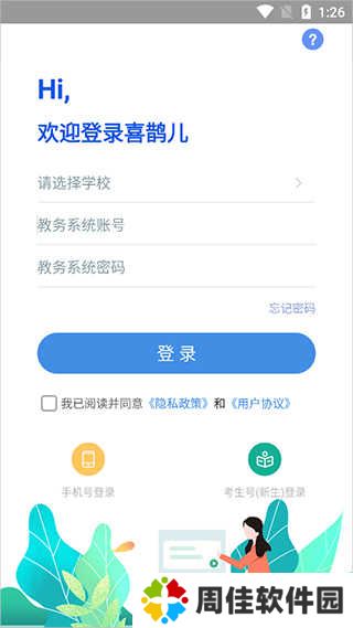 3、软件提供了三种登录方式:教务系统账号登录、手机号和高考考生号(新生)。