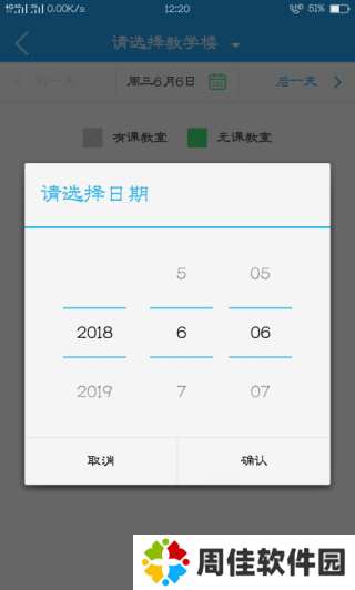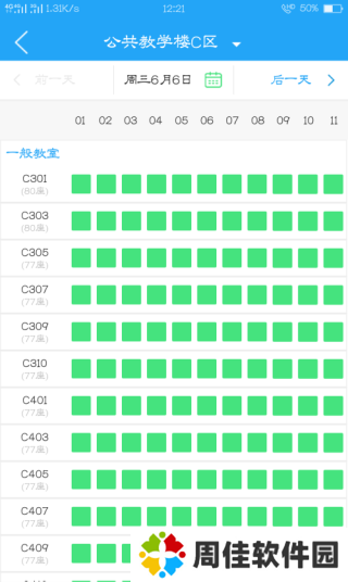 7、还可以点击选择教学楼,找一个舒心的环境,它就会把教室显示出来,有课的是灰色,空闲的是绿色