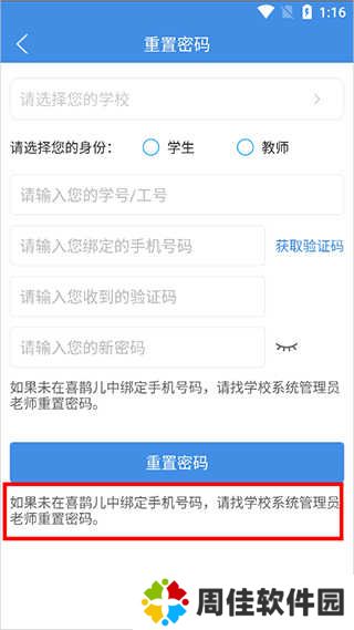 如果未在喜鹊儿中绑定手机号码,请找学校系统管理员老师重置密码