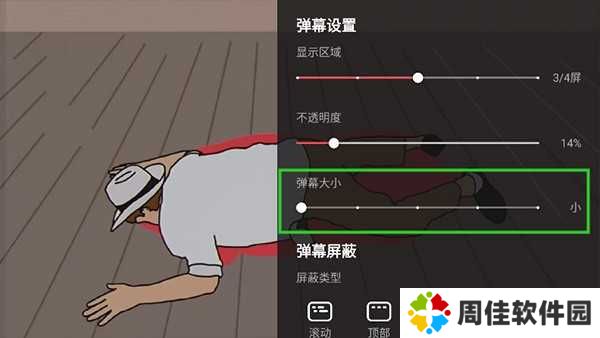 在右侧弹出的弹幕设置页面中可以发现没有弹幕速度设置项,但是用户可以通过设置弹幕大小,可以影响弹幕速度