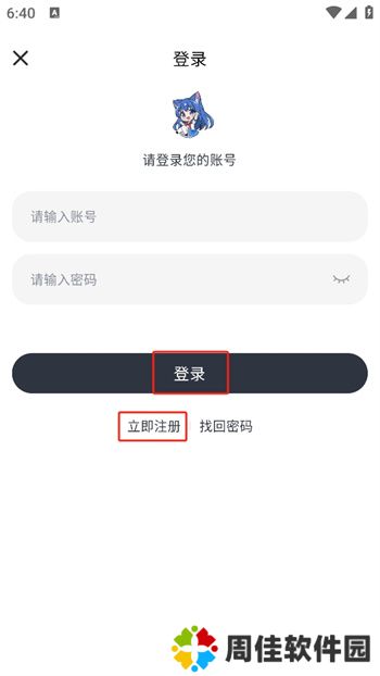 3、在这里输入你的在账号与密码,就可以点击下方的【登录】登上你的软件账号,如果你没有这个软件的账号,可以点击下方的【立即注册】注册一个自己的账号;