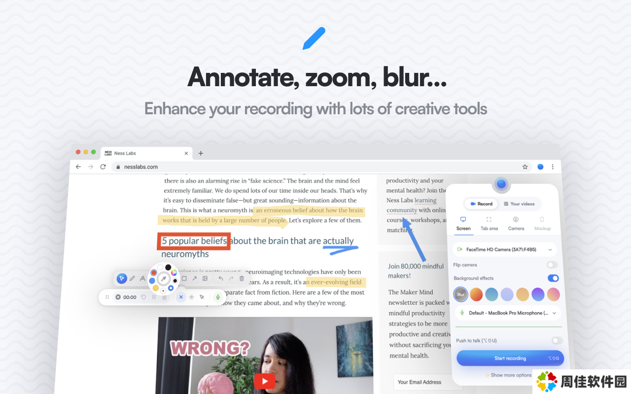 1、无限记录您的标签页,桌面,任何应用程序和相机