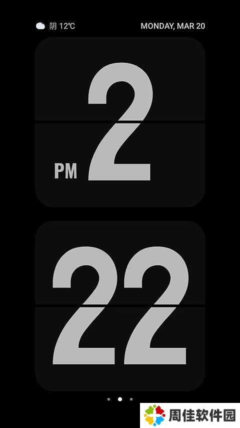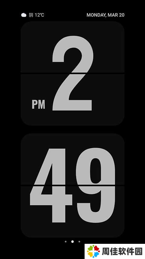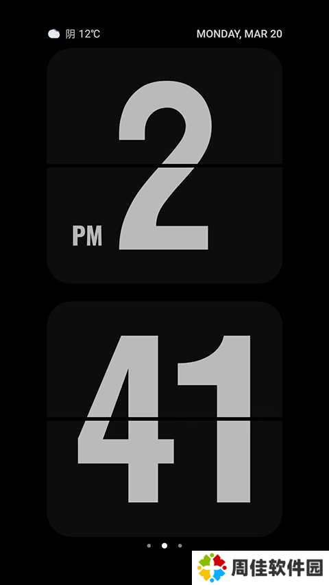 1、在本站下载新版的FlipClock翻页时钟app,进入应用之后,直接即为屏幕保护,可以看到大字体显示的时间和日期,时间以翻转时钟形式呈现。