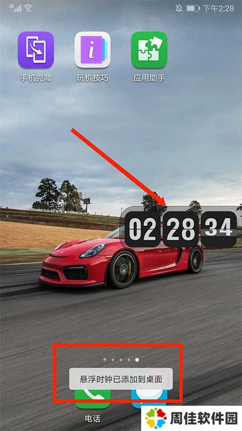 4、返回手机屏幕,可看到翻页时钟,并出现【悬浮时钟已添加到桌面】提示,至此翻页时钟已经成功设置在屏幕了。