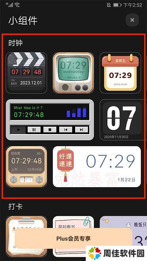 3、进入【小组件】界面,选择相应的时钟类型,点击即可,