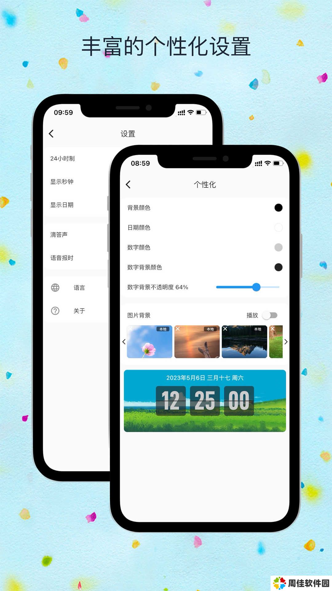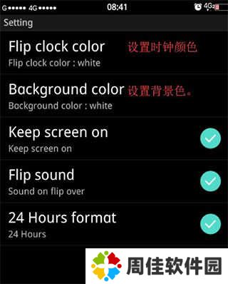 3、设置中第一项为设置时钟颜色,第二项为设置背景色。