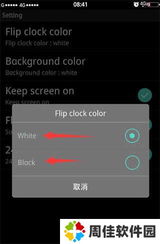 4、时钟颜色和背景色设置均包含两种颜色,分为黑色(black)和白色(white)两种,点击即可设置颜色更改,一般黑色比较喜欢。