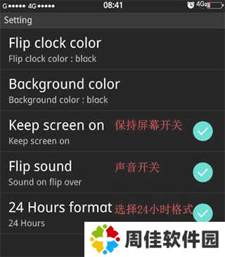 6、默认情况下设置时钟颜色和背景色均为黑色,当手机需要关屏时打开APP即可作为屏保,亮起屏幕即可看到时间和日期。