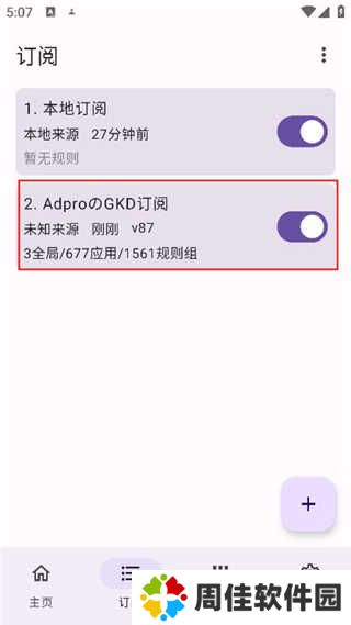 APP分为本地订阅和默认订阅,点击【默认订阅】