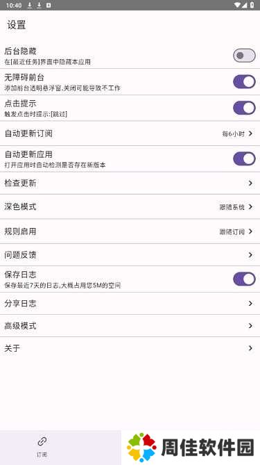 -设置中可以设置后台隐藏、点击提示、自动更新订阅时间...