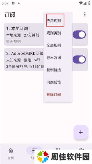 6、接下来点击订阅成功的规则,在点击应用规则;