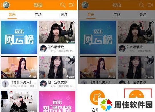 1.打开手**Y进入应用后点击下方 导航 栏中间“+”,接着选择“短拍”。