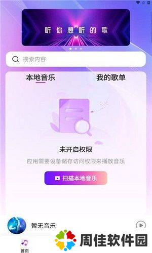 4、在这里快速体验新音乐,还具有扫描本地音乐的功能。