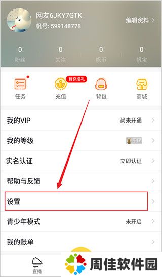 1、手机打开“千帆直播”App,千帆直播主界面点击右下方的“我的”打开个人中心界面。