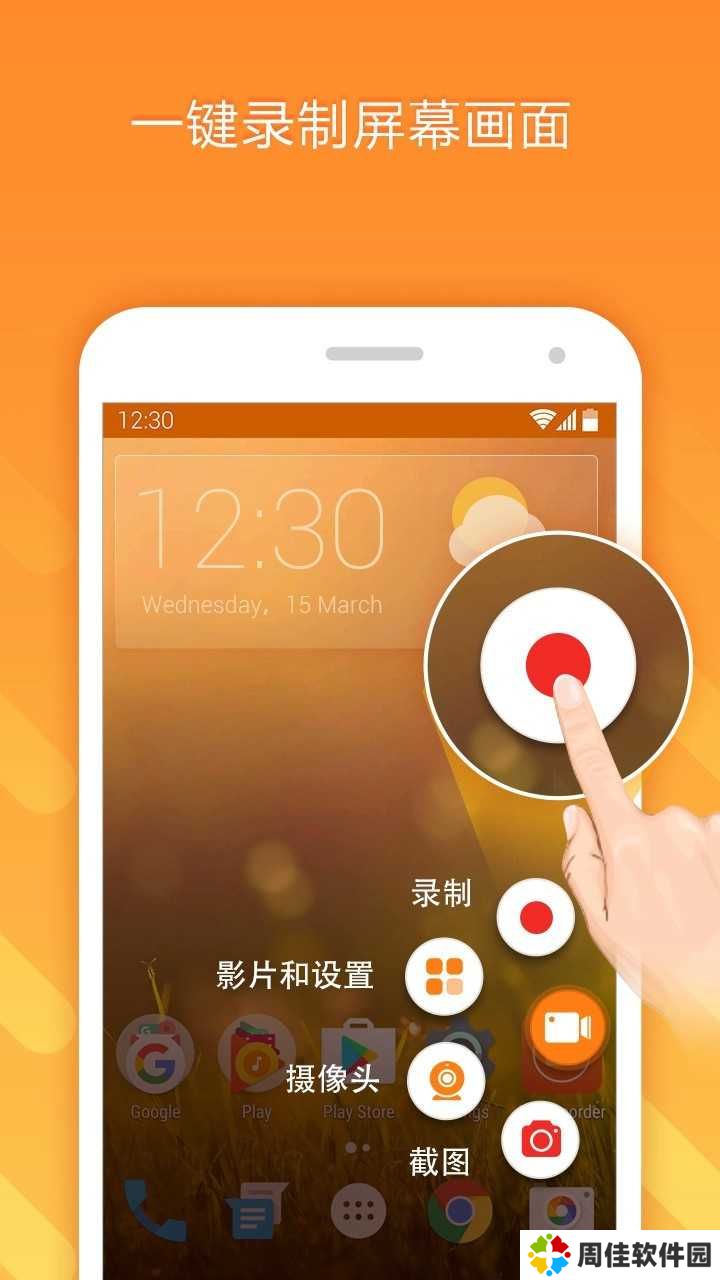 安装软件进入主界面,第一次启动提示软件的使用方法和关闭方法。启动后,手机上方的通知栏出现录制快捷按钮,手机的屏幕右侧也会出现一个悬浮的小图标。