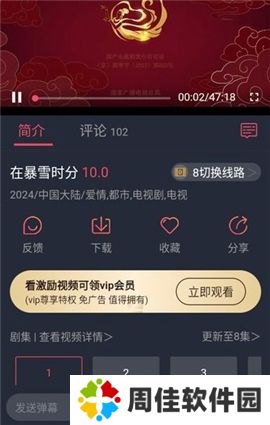 3、可以在视频播放页面下,看到中间有“看激励视频可领vip会员”项目。