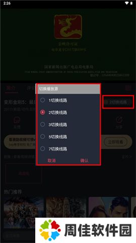 3、点击“切换线路”即可弹出选择框,一般一条视频会有五六个线路可以选择更改。
