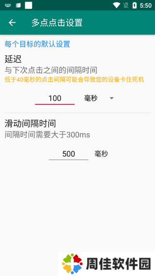 3、同样也是通过设置间隔来控制频率,但要注意,多点间隔尽量不要大于40ms,不然部分机型可能会卡死。