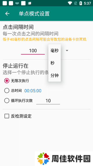 2、通过设置可以调整连点的间隔和执行次数,间隔越小连点频率越高;