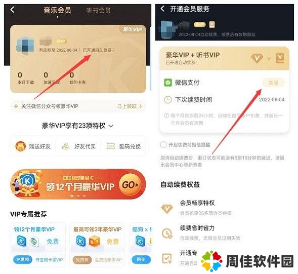 酷狗音乐端:会员中心——音乐包/豪华VIP——已开通自动续费——关闭续费。