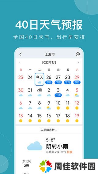 准时天气新人用户快速上手指南1、第一个屏幕显示过去15天的天气预报,放弃无效信息,只显示您想要的内容。