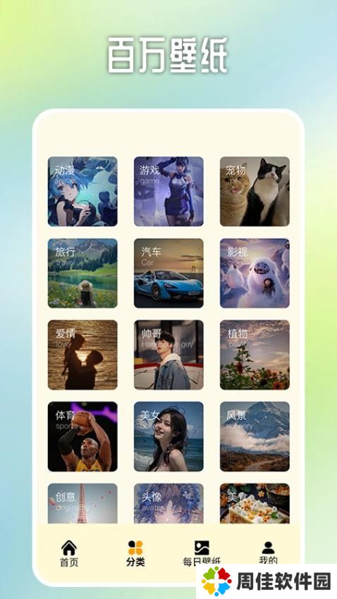 3、百万张壁纸可供选择,多种类别,每日更新,只需点击即可保存高清大图。