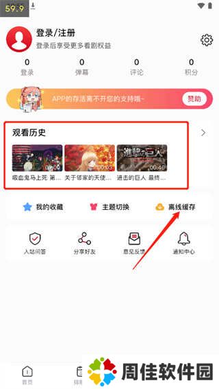 6、最后在我的页面中,可以查看到我们的观看历史及缓存动漫。