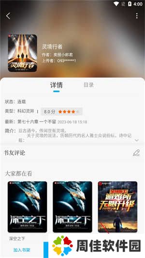 2、内置云端书架,未看完的小说可以直接添加到书架中,下次直接从书架就能打开。