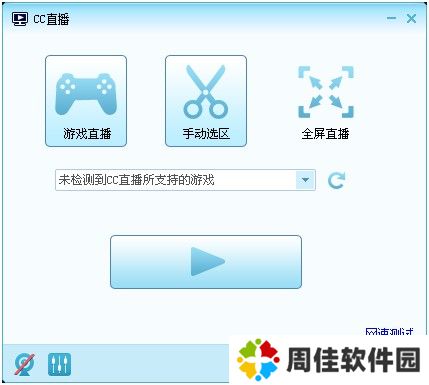 选择合适的直播模式,当前有游戏直播(直接抓取游戏进程直播)、手动选区(桌面捕捉)和全屏直播三种方式。