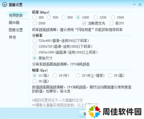 (如开启直播后画面流畅度欠佳,建议重新设置参数,将码率下调至800K或500K,也可在直播前先进行网速测试。)