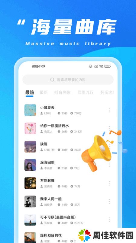 3、实时在线搜索您喜爱的音频材料,并在几秒钟内将其下载到本地。