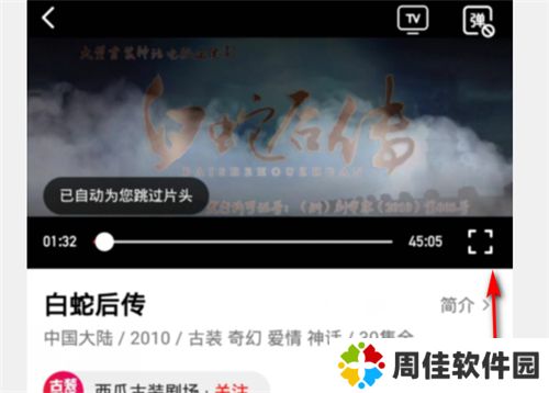 4、打开电视剧页面后,点击视频下方的方格即可开始全屏看电视剧。