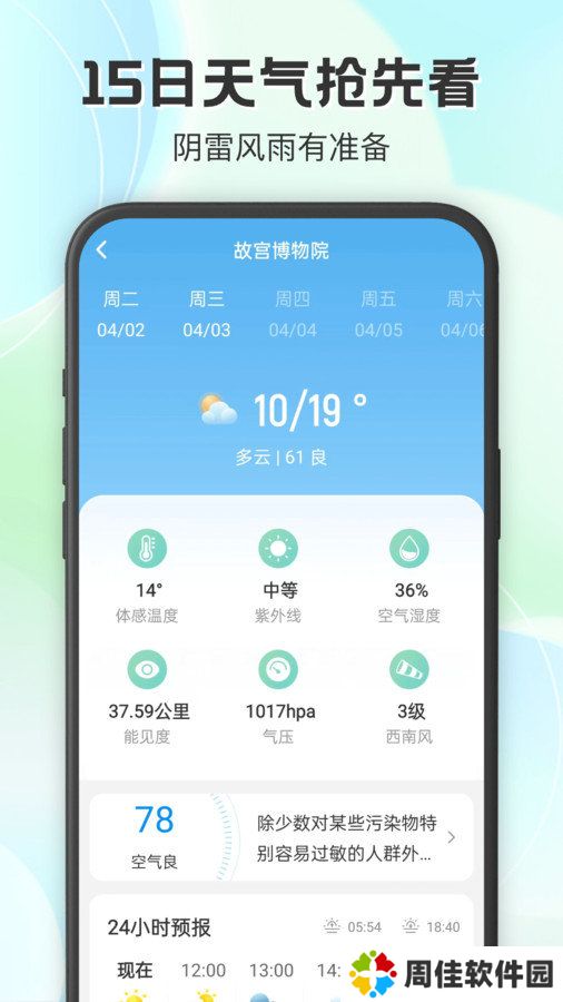 4、能够准确预测下周的天气信息,提前做好出行准备。