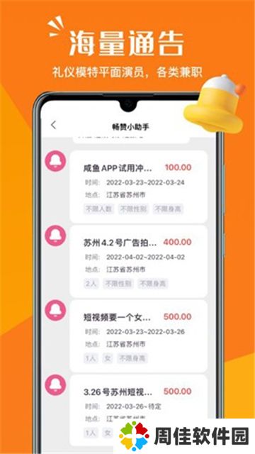 畅赞app是一款手机免费的找工作找兼职软件,每一个自由职业者都可以在这里找到适合自己的工作,通过海量兼职通告发布线上直播互动、知识课程、分享创意、微短剧传播等,轻轻松松在家接单赚钱,选定条件精准定位,推送各种适合你的岗位,把这个软件分享给你的朋友,大家一起经济独立,畅赞app功能齐全界面清爽简洁,更多安卓手机软件资源快来七匣子手游下载中心下载吧!