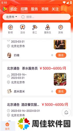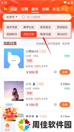 2、用户还可以在首页查看同城服务,如果你有一技之长,就可以在同城服务中找到多种工作内容,同时还提供短视频功能,可以浏览趣味的内容。