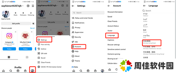 登录ins手机版 > 点击右下角头像 > 点 击右上角 三 > Settings > Account > Language > 选择中文(简体) 即可。