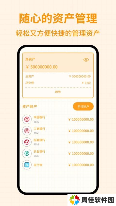 2、在线添加账户信息可以为用户提供清晰详细的资产信息。