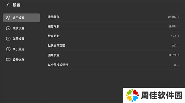 7、最后点击首页左下角齿轮状按钮,玩家可以自定义设置通用设置、播放设置、弹幕设置等等;